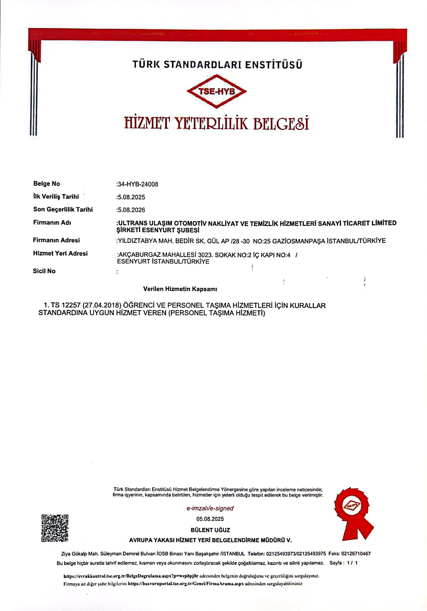 TSE 12257 Hizmet Yeterlilik Belgesi